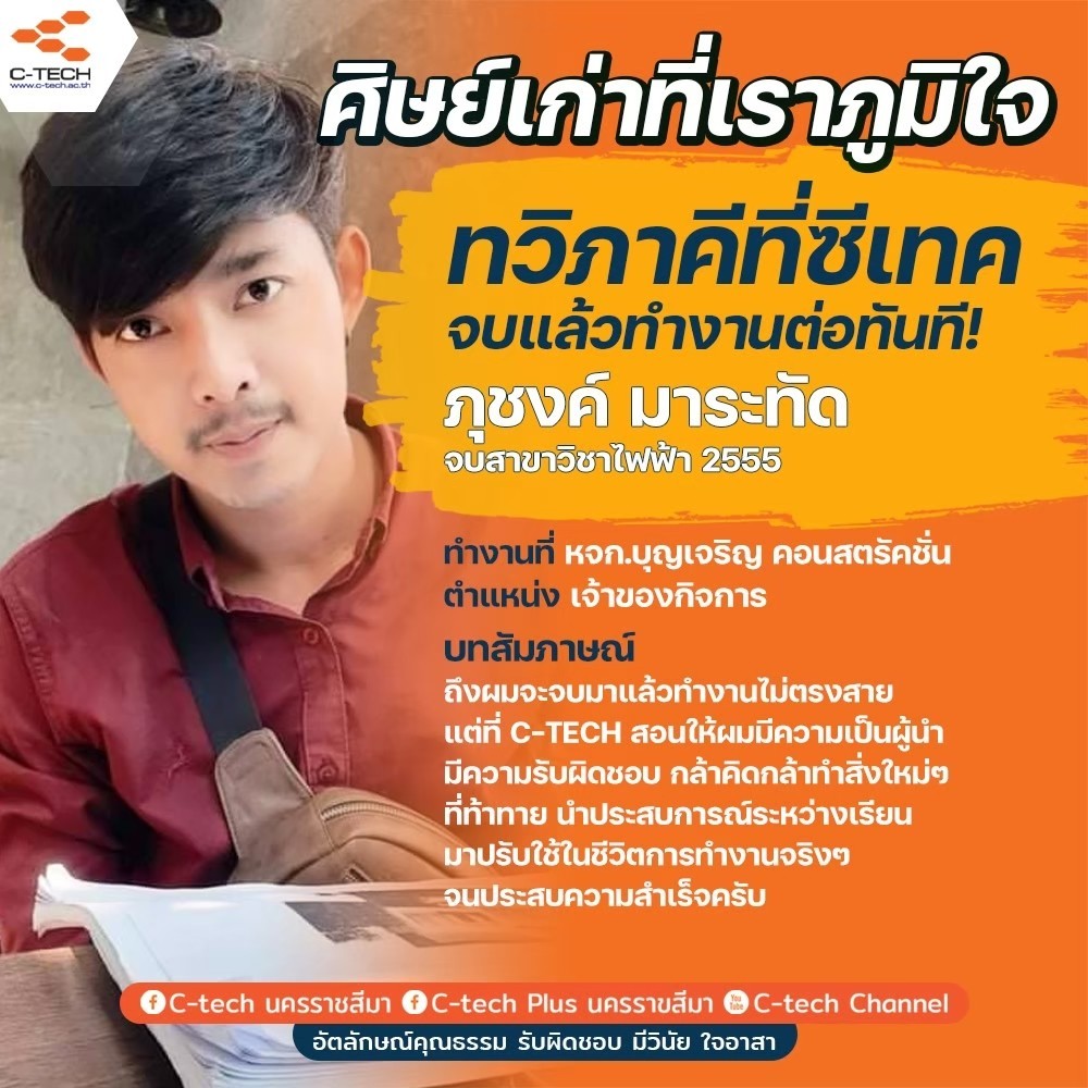 การทำงานกับการเรียน ที่มีความใกล้เคียงกัน ทำให้สามารถนำมาปรับใช้กับการทำงานได้ วันนี้การเป็นทหาร ผมก็ได้นำประสบการณ์ จาก C-TECH มาใช้กับการทำงานได้เป็นอย่างดี